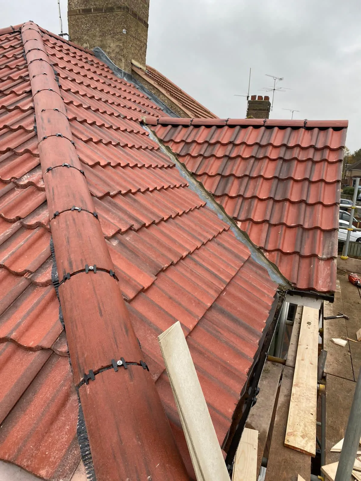 Re-bedding and repointing roof ridge tiles
